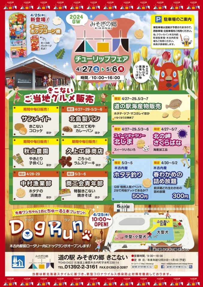 木古内駅前にあります道の駅みそぎの郷きこないでは、4月27日~5月6日までイベントを行います。きこないご当地グルメの販売や、日替わりでの催しも行われる予定です。どうぞお立ち寄りください。